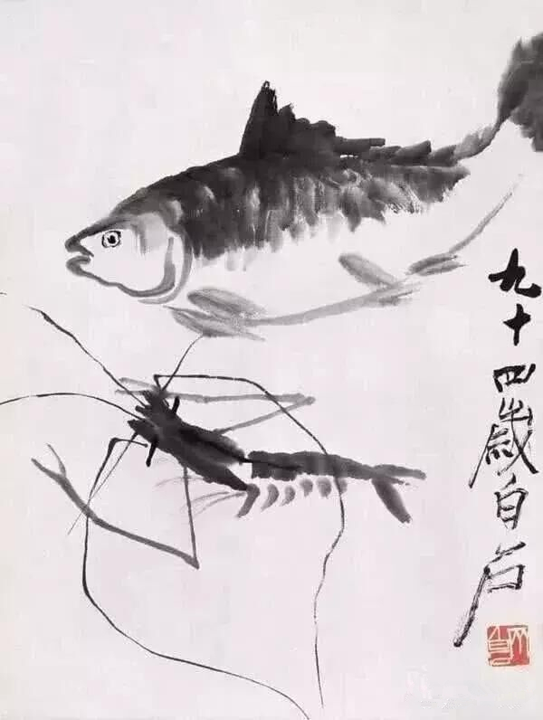 齊白石筆下的魚,就算是國畫也能把魚畫得活靈活現(xiàn),隨便幾筆拖墨法就足以表達魚的童趣。大家隨處可見的鯰魚,齊白石卻是用淡墨把魚身和魚頭給畫出來,然后背上則是用魚鰭給突出??醇毧此R派畫法的點睛之筆,那就是為鯰魚畫上了一雙可愛的大眼,再加上二根鯰魚須,非常的生動形象,真不愧是大師的筆法。