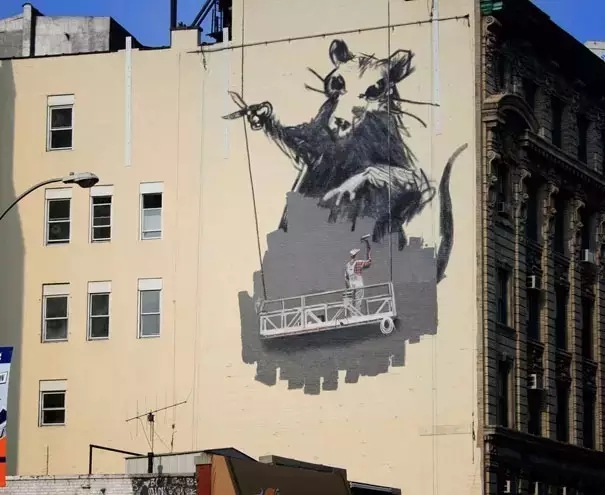 班克西的作品遍及英國各城、維也納、洛杉磯、紐約、巴塞羅那、巴黎各地令人意想不到的街頭巷尾。