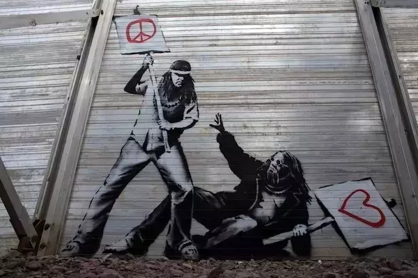 班克西反戰(zhàn)的態(tài)度再次以匪夷所思的形式,