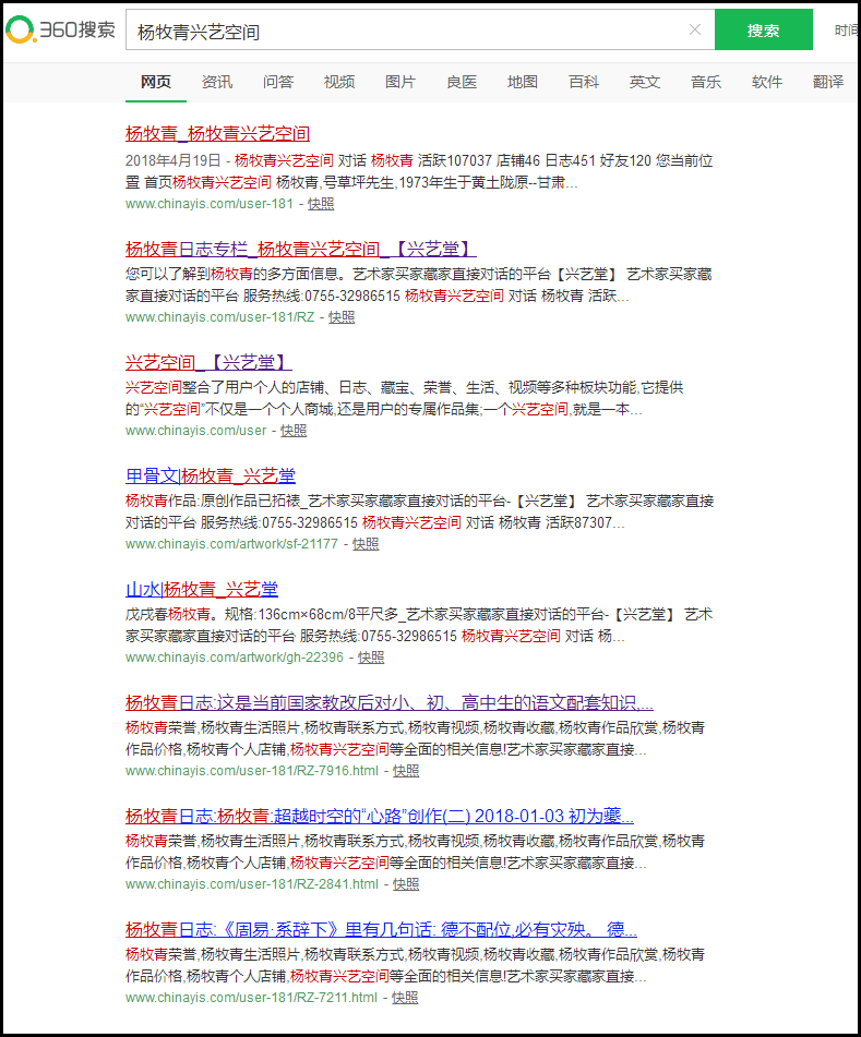打開360瀏覽器 https://www.so.com/ 試試 用您的名字+興藝空間,搜索一下,,是不是也有這么豐富的搜索結(jié)果呢?