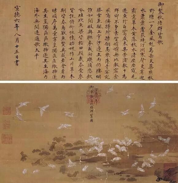 朱瞻基《秋塘群鷺圖》
