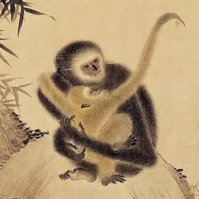 這幅《戲猿圖》,除題材吉祥之外,更能使人感受到一家和樂融融的人倫之意。石上母猿愛憐地抱幼猿在懷,右上角公猿正攀援在隔溪的樹上,摘了一串果子,引逗小猿,生動地描繪了猿的三口之樂。此畫完成于公元1427年,作畫緣起應(yīng)與當(dāng)時發(fā)生的事件有關(guān)。
