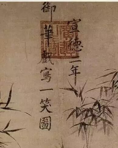 明宣宗問:“你瞧朕畫的是什么?”孫皇后掩口笑道:“兩竿竹下繪一犬,扭首企盼為笑焉?!庇谑呛酰餍诩磁d揮毫,豎書楷體題款:“宣德二年,御筆戲?qū)懸恍D?!碑?dāng)御書至“笑”字的“竹”頭,有意將下“夭”字上的一撇,點在“大”字的右上邊,書為“犬”字。
