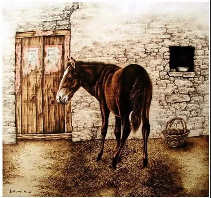 2004年6月田玉田創(chuàng)作的木板現(xiàn)代火烙畫(農家馬)榮獲第五屆中國民間工藝獎,金獎。
