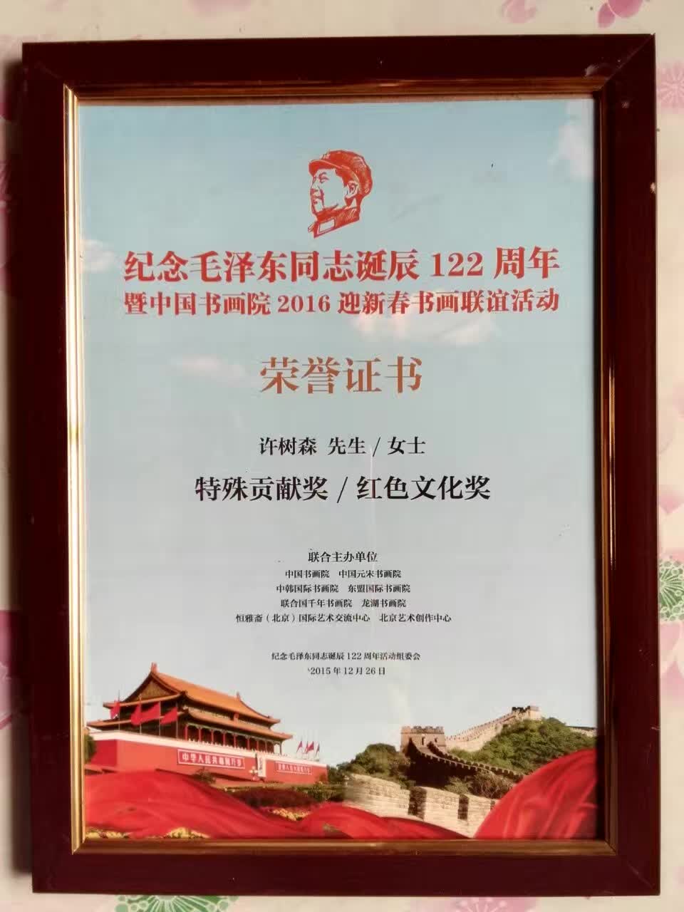 許樹(shù)森,字厚道、悟生齋主,男,1955年3月生,大學(xué)學(xué)歷,河北省廊坊市安次區(qū)人。自幼喜愛(ài)詩(shī)、書(shū)、畫(huà),五十年臨摹畫(huà)貼習(xí)書(shū)不輟,臨書(shū)王羲之蘭亭序、圣教序,后拜當(dāng)代中國(guó)書(shū)法五大家、中國(guó)翰林書(shū)畫(huà)藝術(shù)院副院長(zhǎng)楊哲江先生為師,逐漸形成自己獨(dú)特的書(shū)法藝術(shù)風(fēng)格?,F(xiàn)任聯(lián)合國(guó)世界華商聯(lián)合會(huì)書(shū)畫(huà)工作委員會(huì)副主席,聯(lián)合國(guó)世界工商研究院文學(xué)研究所副所長(zhǎng),中國(guó)將軍部長(zhǎng)書(shū)畫(huà)研究員,中國(guó)書(shū)畫(huà)名家聯(lián)合會(huì)會(huì)員,中國(guó)榜書(shū)家協(xié)會(huì)會(huì)員,東方藝術(shù)天地網(wǎng)顧問(wèn),中國(guó)書(shū)畫(huà)院院士,中國(guó)文化收藏網(wǎng)簽約書(shū)法家,燕南詩(shī)社理事,廊坊龍河書(shū)院理事,中國(guó)北京中小企業(yè)總裁培訓(xùn)集團(tuán)講師,資源整合專(zhuān)家,社會(huì)活動(dòng)家,資深撰稿人,資深策劃人。2015至2016年連續(xù)兩年入選中國(guó)人民藝術(shù)家協(xié)會(huì)特別推薦同賀(中國(guó)人大,政協(xié)兩會(huì))當(dāng)代書(shū)畫(huà)名家。