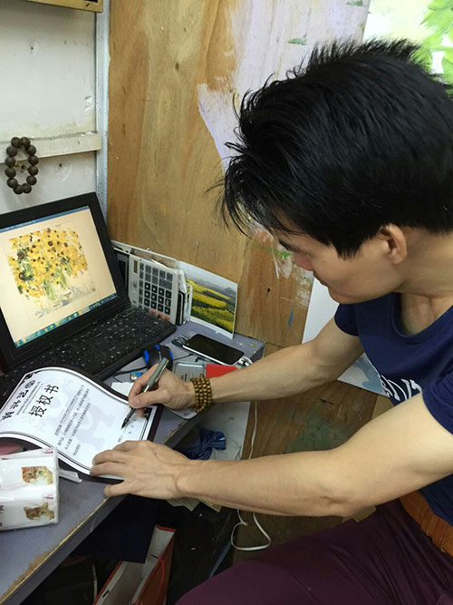周海波,80后職業(yè)畫家,生于廣東湛江。先后畢業(yè)于嶺南師范學(xué)院美術(shù)系,廣州美術(shù)學(xué)院高級(jí)進(jìn)修班,獲學(xué)士學(xué)位。自幼習(xí)畫,現(xiàn)致力于中國民俗人物油畫方面探索、創(chuàng)作?,F(xiàn)為中國書畫家協(xié)會(huì)理事、廣東青年美術(shù)家協(xié)會(huì)會(huì)員,青年藝術(shù)家同盟會(huì)主持,近年來多次參加國內(nèi)外展覽。