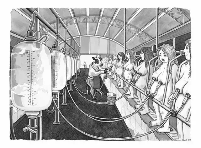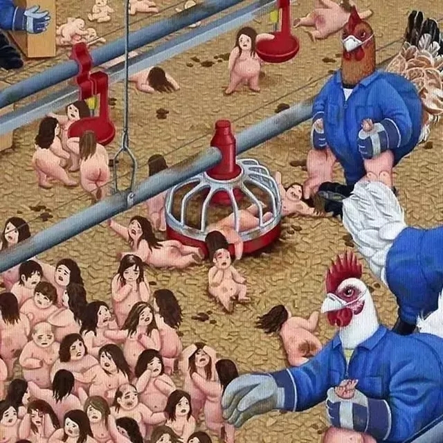奶人的首次受孕年齡平均在12-13歲,即剛剛性成熟。嬰兒們生下來就會被帶走,以此可以確保所有的人奶都被用于銷售。女嬰會被圈養(yǎng)至12歲,然后和她們的媽媽一樣,成為奶人。男嬰則會被關(guān)在不能轉(zhuǎn)身的籠子里養(yǎng)到四個月,然后被屠宰賣肉。新鮮的沒有任何肌肉的嬰兒肉售價可是最高的!