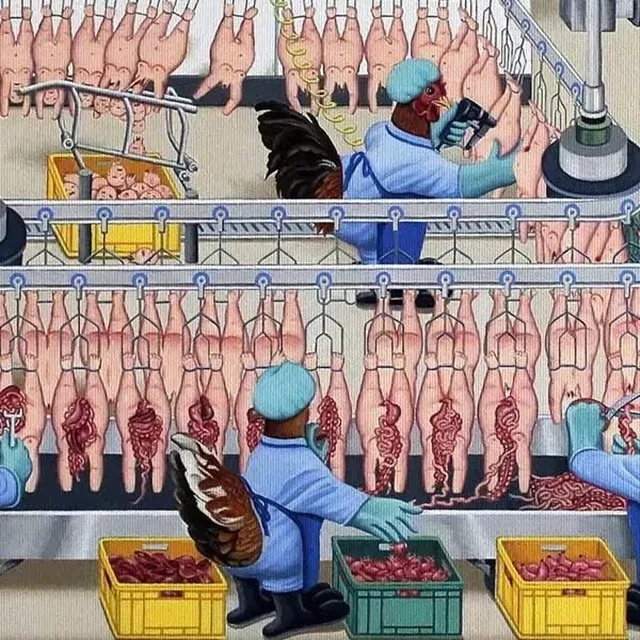 盡管這些漫畫可能有些不合理的地方,但是作品的主題思想:促使人們換位思考“作為人類,我們千百年來所譴責(zé)與反抗的種種暴行,現(xiàn)在都正被我們加諸在動物身上,并且甚至是以百千萬倍的殘酷?!?/span>還是值得深思的。