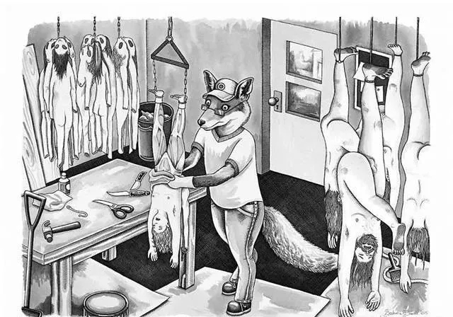 狐貍工正在活剝?nèi)似?,用來制作手工的人皮大衣,可以賣個好價錢。