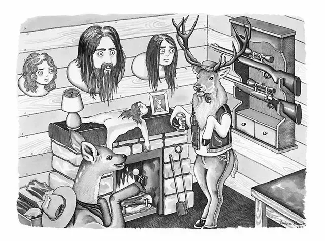 其實Daniels一開始的畫風(fēng)并不是這樣的。早期的作品雖然也是畫人和動物,但只是有一些怪誕的意味,并沒有那么強烈的諷刺意義。