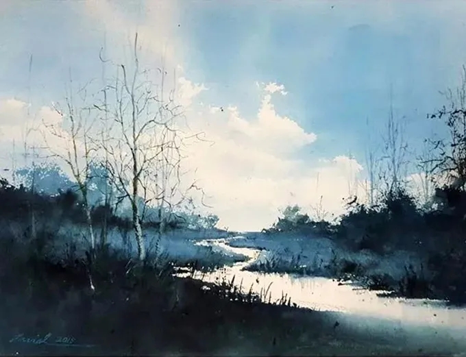 看他筆下的水景,仿佛是在看美景畫畫,開始了一個悠長的夢。