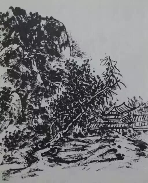 我用積墨,意在墨中求層次,表現(xiàn)山川渾然之氣。有人既以為墨黑一團,非人家不解,恐我的功力未到之故。積墨作畫,實畫道中的一個難關(guān),多加議論,道理自明。