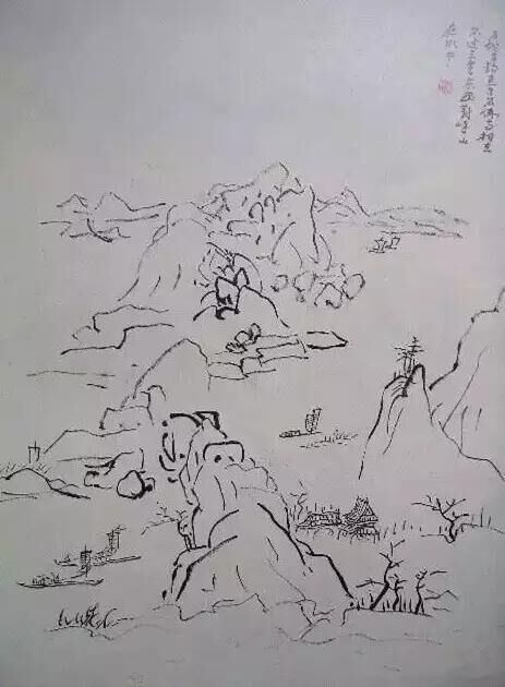 凡畫山,山下必有水,欲其波之整而理也,故吾以(李)斯翁小篆之法行之。