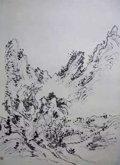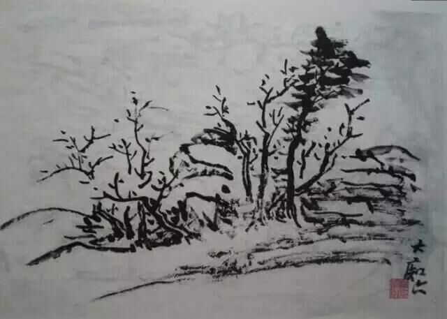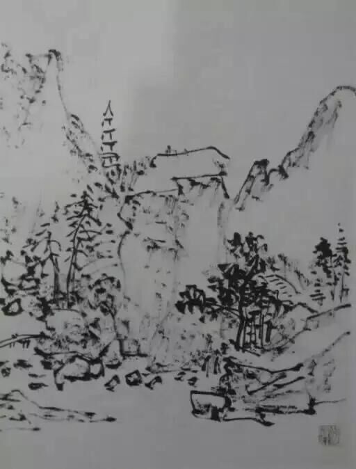 濕筆、渴筆,作畫時都要用。都是在變化的。先是濕筆,用到后來成渴筆。但濕筆不可成墨豬,渴筆不可成枯木。垢道人下筆“潤含春雨,干裂秋風(fēng)”,非一時之功。要在運筆的徐疾、提按、頓挫、點垛、轉(zhuǎn)折上多練習(xí)。